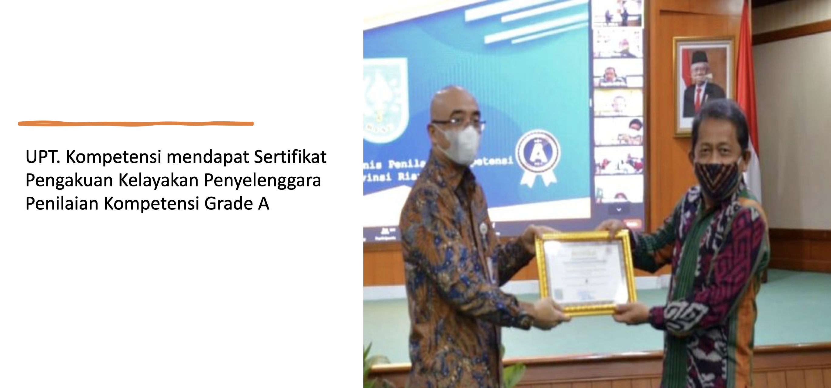 UPT. Kompetensi mendapat Sertifikat Pengakuan Kelayakan Penyelenggara Penilaian Kompetensi Grade A